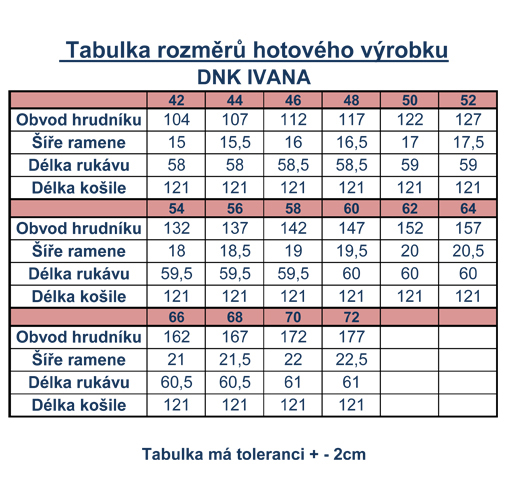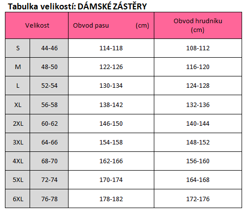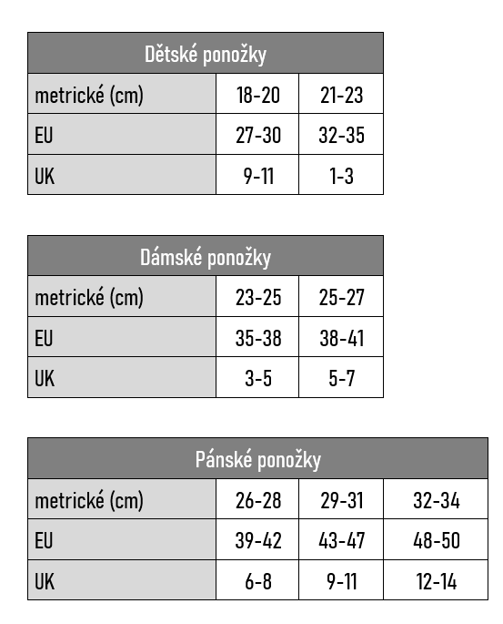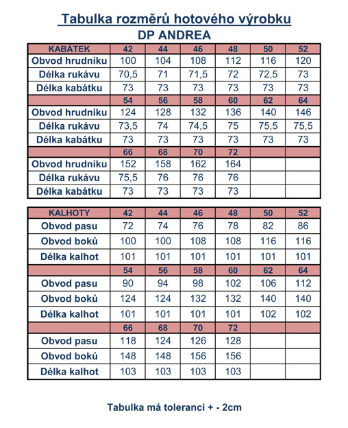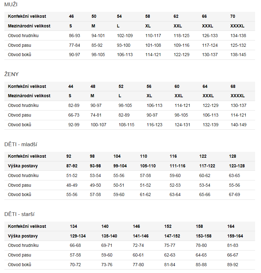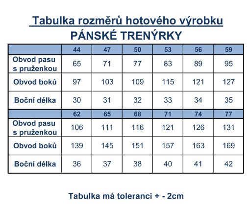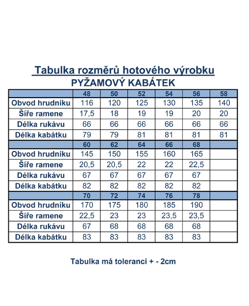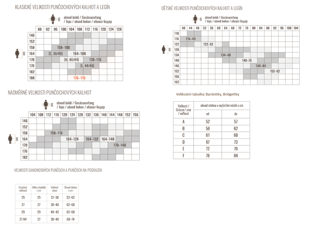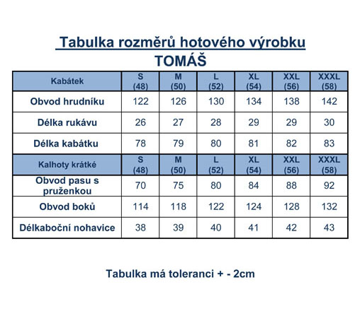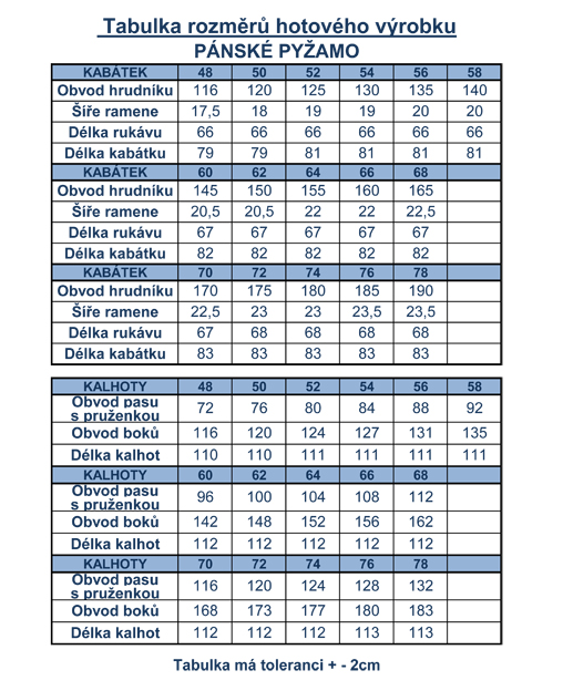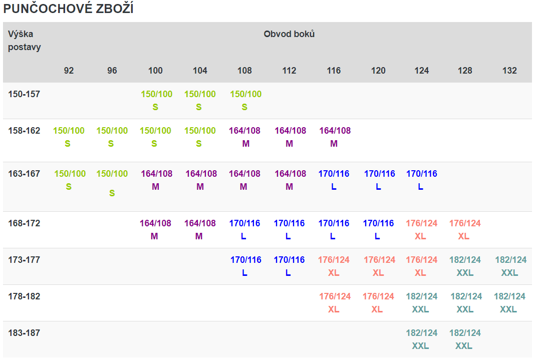 Tabulky velikostí PONOŽKY ANDRIE - prádlo EVONA - prádlo EVONA - punčochové zboží EVONA - ponožky a balerínky ELITE - punčochové zboží MONA - punčochové zboží DARREN - punčochové zboží NGM - punčochové zboží LUIZ - trenýrky LUIZ - trenýrky s rozparkem (boxerky) LUBOŠ LUIZ - pánská pyžama LUIZ - pyžamo ALEX LUIZ - pyžamo TOMÁŠ LUIZ - pyžamo HENRY LUIZ - pyžamové kabátky LUIZ - pánské noční košile LUIZ - pánské domácí kalhoty LUIZ - pánská flanelové košile BRUNO LUIZ - dámské pyžamo Slim LUIZ - dámské pyžamo Klasik LUIZ - dámské pyžamo ANDREA LUIZ - dámská noční košile CARLA LUIZ - dámská noční košile IVANA LUIZ - dámské domácí kalhoty LUIZ - dámské župany LUIZ - pánské župany LaPenna - noční prádlo CALVI - noční prádlo STYX - spodní prádlo BONASTYL - pyžama BONASTYL - zástěry BONASTYL - oblečení a čepice NEVIDITELNÁ TRIKA DĚTSKÉ OBLEČENÍ SPAIO - kompresní návleky SPAIO - termoprádlo